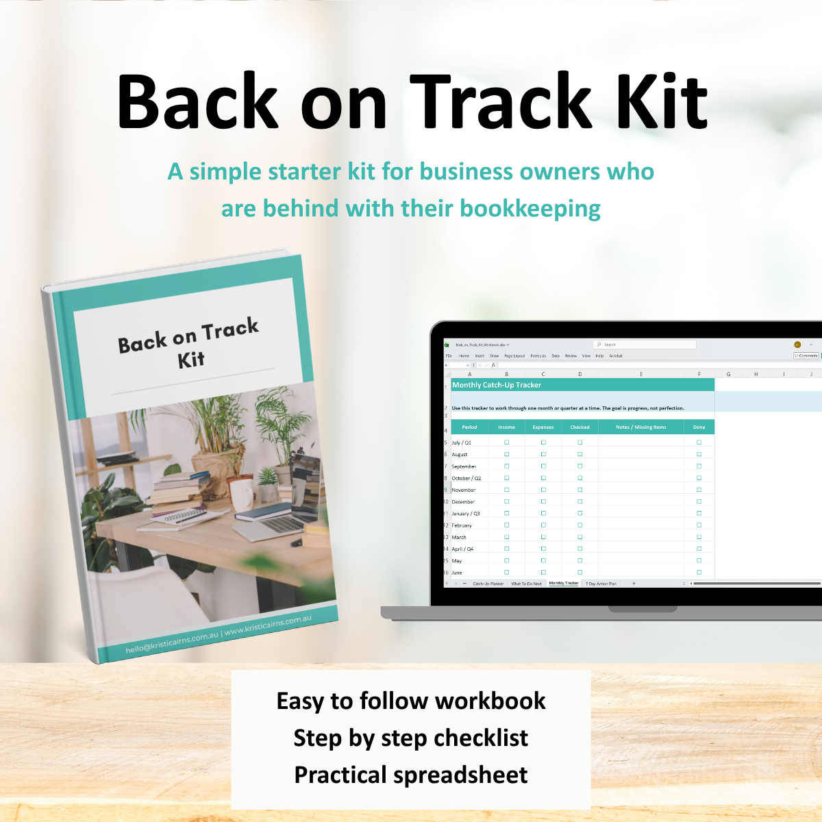 The Back on Track Kit is a simple, practical starter kit for small business owners who know things are behind, messy or inconsistent and need a clear place to begin.